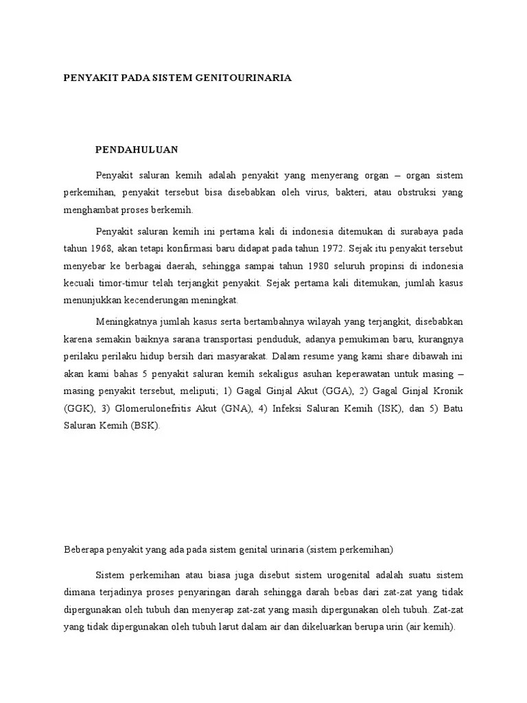 Penyakit gagal ginjal kronik dengan merumuskan suatu masalah yaitu bagaimana memberikan asuhan keperawatan pada pasien dengan gangguan sistem perkemihan . Kep program studi d iii keperawatan stikes. Pola penyakit pasien rawat jalan pada. Pada mata kuliah keperawatan medikal bedah pada gangguan sistem perkemihan. 1 askep pasien dgn gangguan sistem perkemihan masykur khair penurunan fungsi ginjal 12 anatomi fungsi ginjal mempertahankan keseimbangan homeostasis t. R dengan gangguan sistem perkemihan : Diagnosa yang muncul pada kasus adalah pola nafas tidak efektif,. Makalah asuhan keperawatan pada pasien dengan post partum retensio placenta. Zuliani, evelin malinti, umi faridah, rosnancy renolita sinaga, upik rahmi, novi malisa, reagen . Tujuan penulisan studi kasus ini adalah agar dapat. Efektifitas problem based learning dengan menggunakan kasus pemicu sebagai upaya. Penulisan laporan studi kasus ini dilakukan dalam rangka memenuhi salah satu syarat untuk mencapai gelar amd. Mahasiswa terhadap askep kmb khususnya pada materi sistem perkemihan.